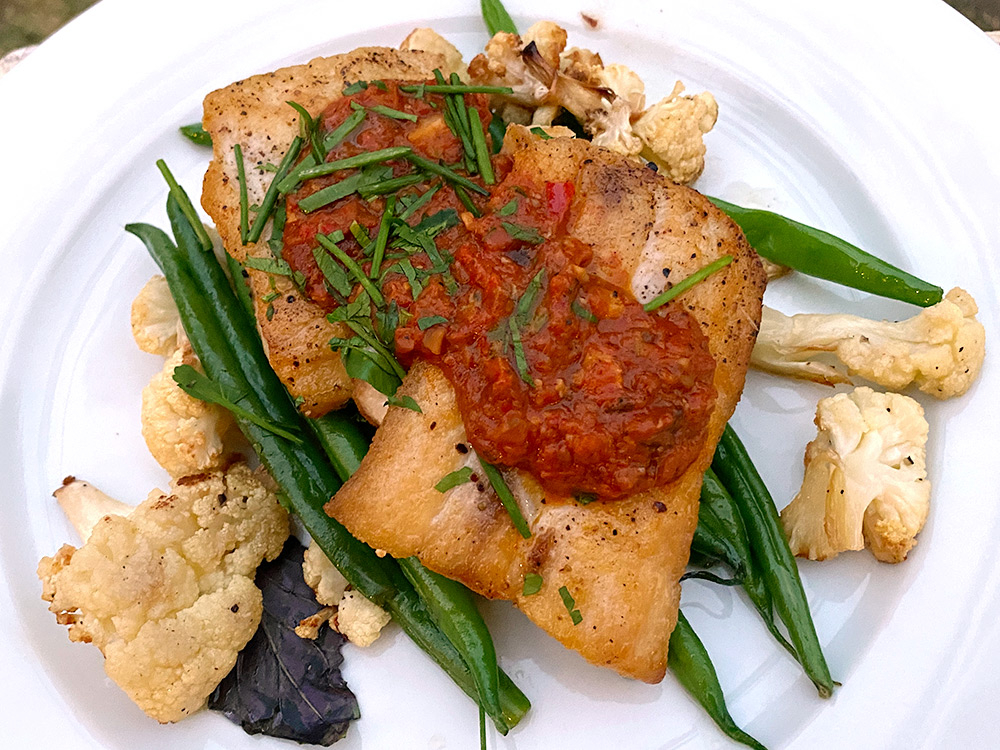 mix | Pan-roasted fish — roasted cauliflower, green beans,