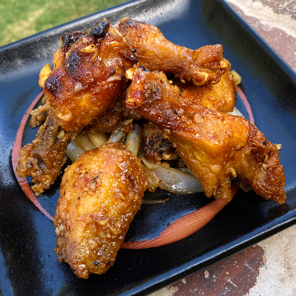 chicken wings bathed in a syrupy fish sauce glaze are off the