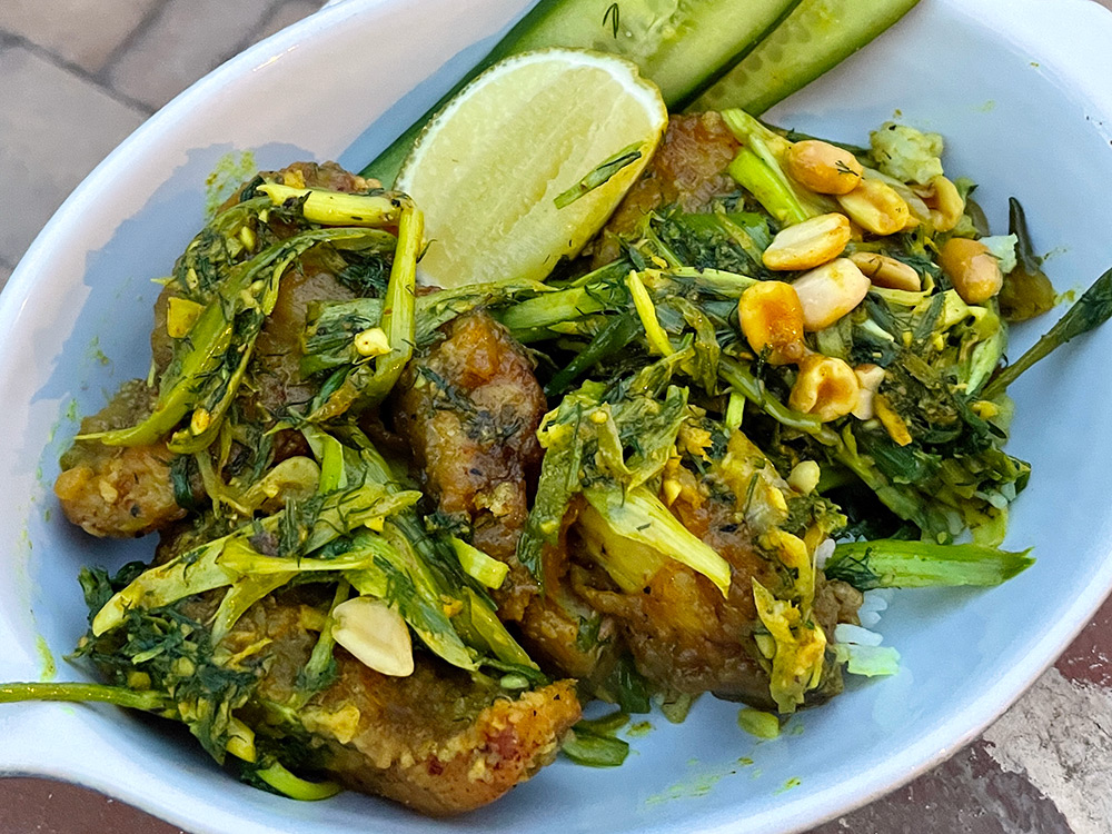fish special, though, dusted with turmeric and ginger, funked up with shrimp paste and sporting some belligerent dill. (Can we talk about how underrated dill is, BTW?)