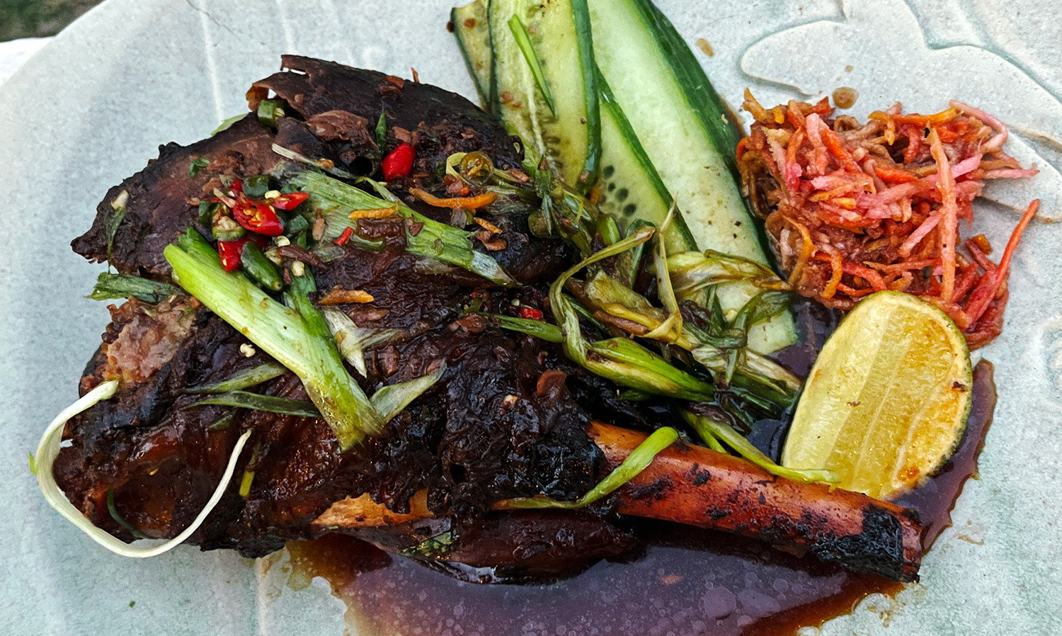 braised lamb shank with coconut juice, garlic, fish sauce, chiles, scallions, lime and mint