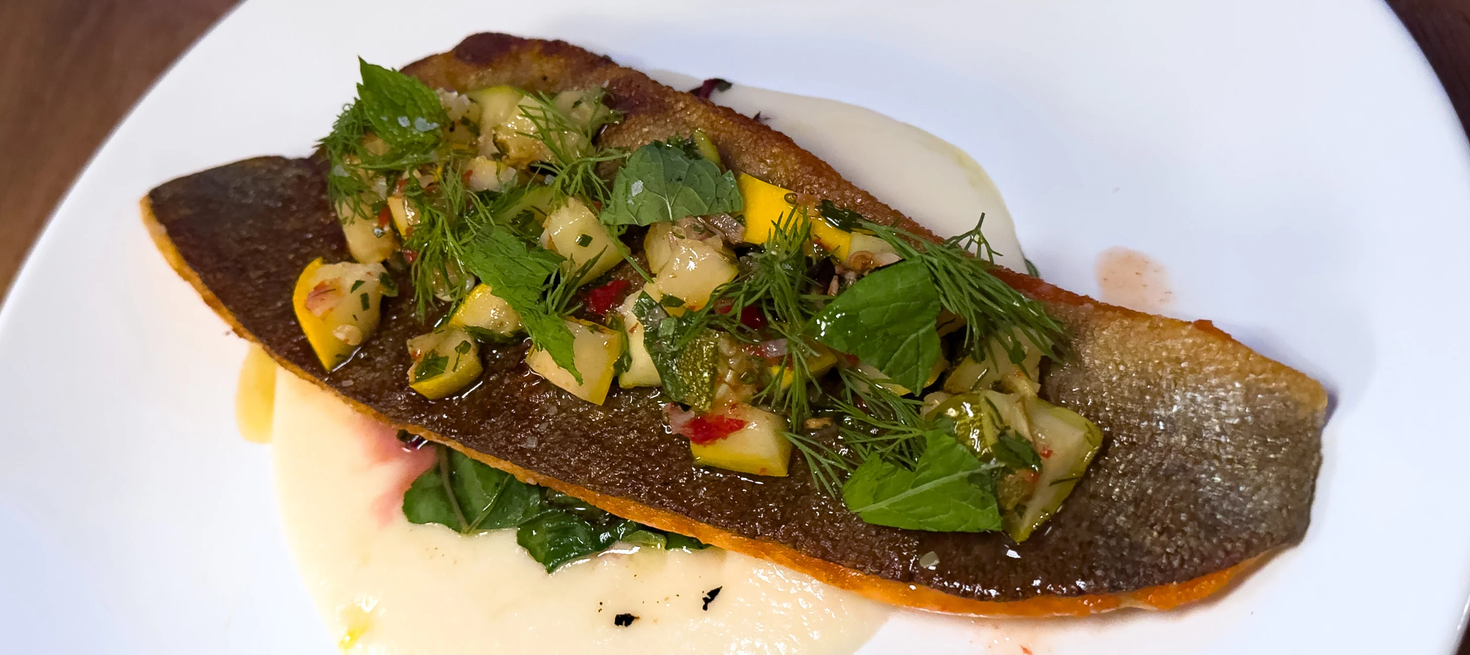 steelhead trout, deftly seared and plated with summer squash, fresh