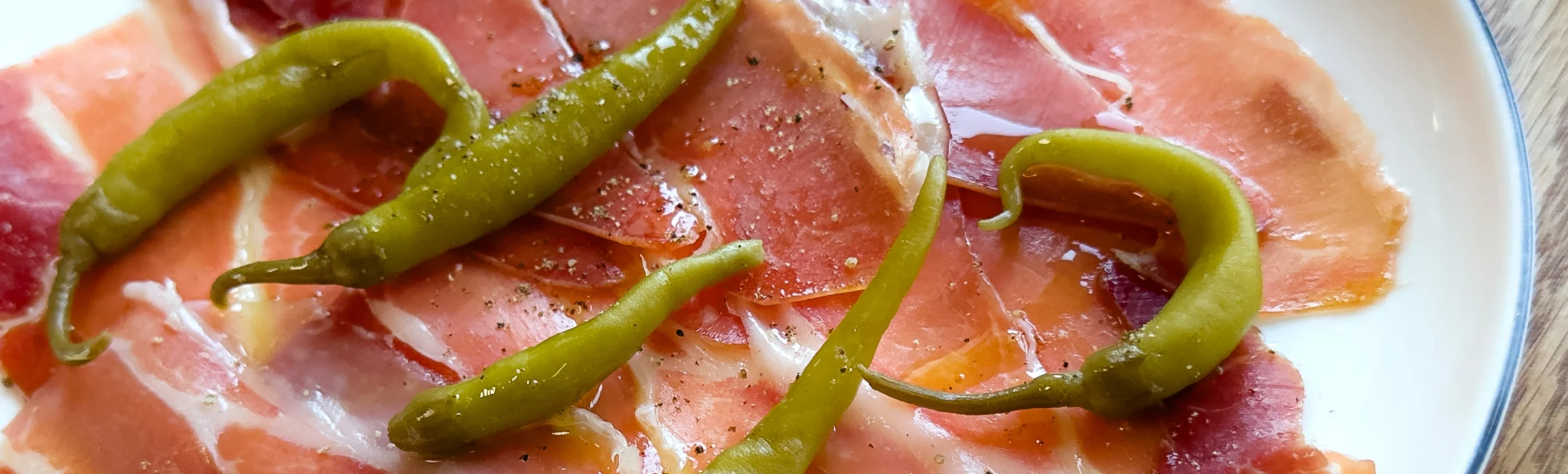 punchy herbed meat salad built on slices of juicy pork jowl, seared and